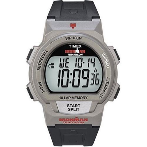A valuable training tool for athletes of any level, the Ironman Triathlon 10-Lap sports watch is practical, reliable and durable. 10-lap memory recall, chronograph with lap and split functions, 24-hour 2-mode countdown timer, settable alarms, and Indiglo lighting. 10-lap memory recall 100-hour chronograph with Lap and Split functions 99-lap counter 24-hour countdown timer Dual time zones Built-in setting reminders Forward and backward setting Top Pusher for easy operation Weekday or weekend alarm with 5-minute backup Day, date and month display All-day white reflector display Indiglo nightlight with night mode for easy viewing Water-resistant to 100 meters Includes case Black/Red colorYou can buy the special prices of "Timex Ironman Triathlon 10-Lap Watch" at Timex Ironman Watch Reviews.