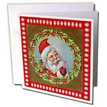 Vintage Santa in Wreath Cameo Greeting Card is measuring 5.5w x 5.5h. Greeting Cards are sold in sets of 6 or 12. Give these fun cards to your friends and family as gift cards, thank you notes, invitations or for any other occasion. Greeting Cards are blank inside and come with white envelopes.