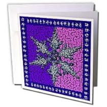 Large Snowflake Tile in Blue and Purple Greeting Card is measuring 5.5w x 5.5h. Greeting Cards are sold in sets of 6 or 12. Give these fun cards to your friends and family as gift cards, thank you notes, invitations or for any other occasion. Greeting Cards are blank inside and come with white envelopes.