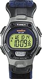 Keep your sports training focused with the traditional, mid-sized Timex T53401 Ironman Triathlon multi-function, performance sport digital watch, which features a 30-lap memory recall, all-day Indiglo display feature, top pusher for easy access to lap and split times, black resin top ring within a metallic silver case, and stretchable nylon strap in blue and black. Sport timing features include a 100-hour chronograph with lap or split option, 24-hour countdown timer with countdown/stop and countdown/repeat functions, and 99-lap counter. It also features daily/weekday/weekend alarms with 5-minute back-up, two time zones, built-in setting reminders, and water resistance to 100 meters (330 feet).