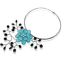 This charming necklace is handcrafted with blue turquoise, clear crystals and black onyx stones with a lovely flower inspired design.Choker approx. 17 inches long with diameter of 2.4mm.